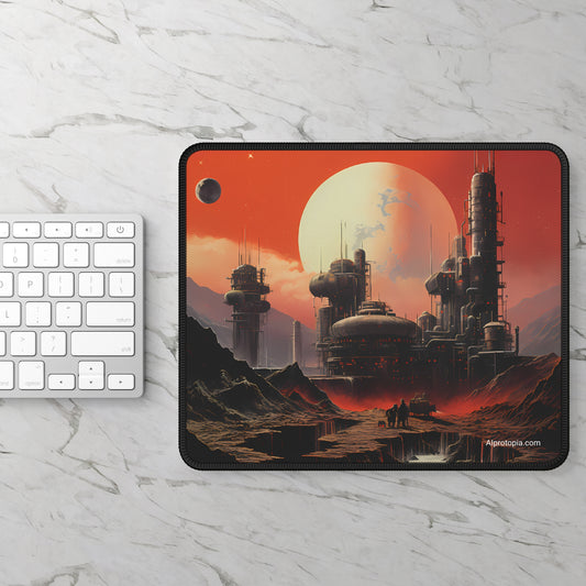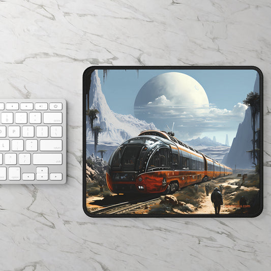 Train on Alien World Mouse Pad. SCI-FI. Planets. Trains. AI Art.